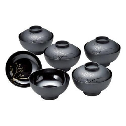 紀州塗 草花 吸い物椀5客揃 11 004