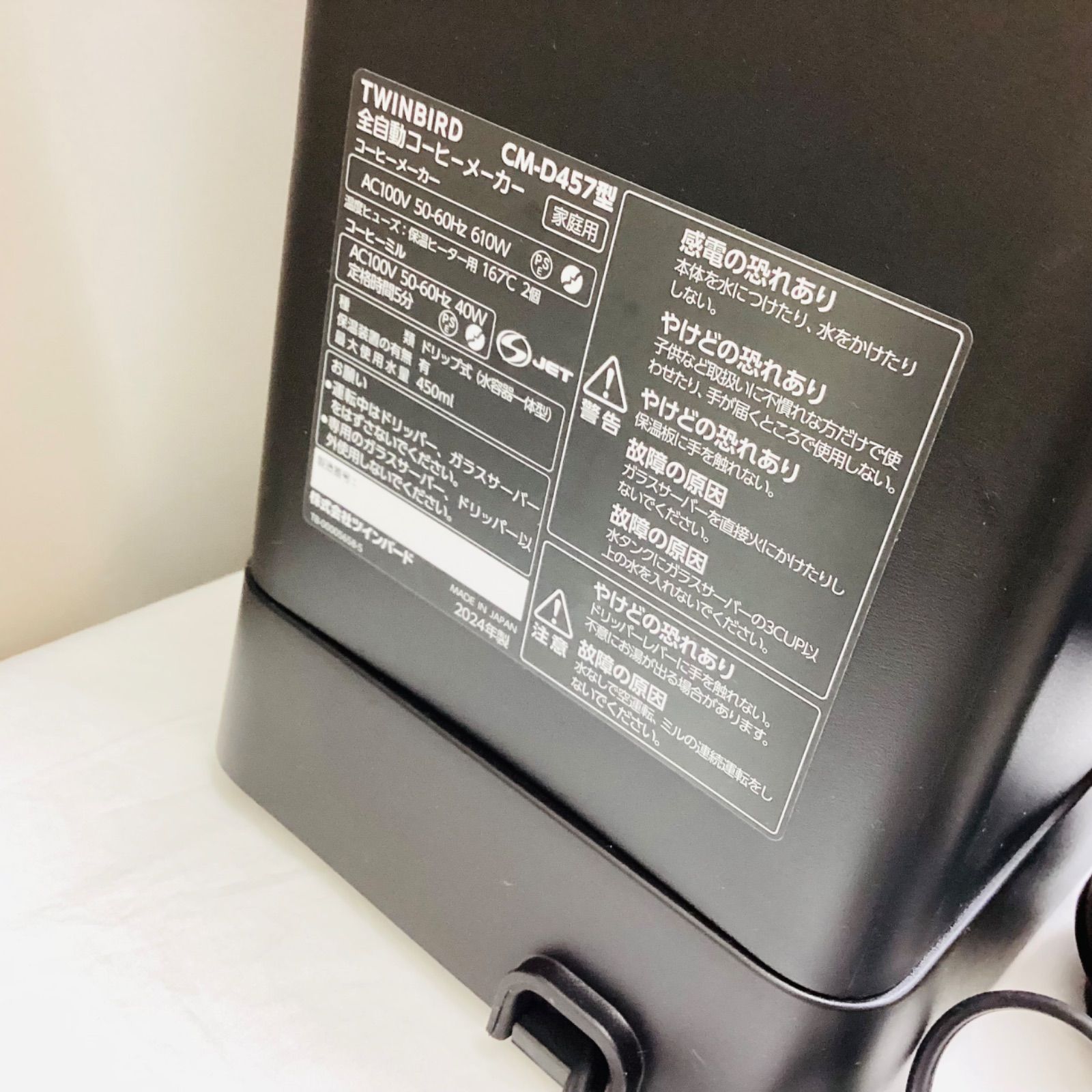ツインバード 全自動コーヒーメーカー CM D 457 2024年製