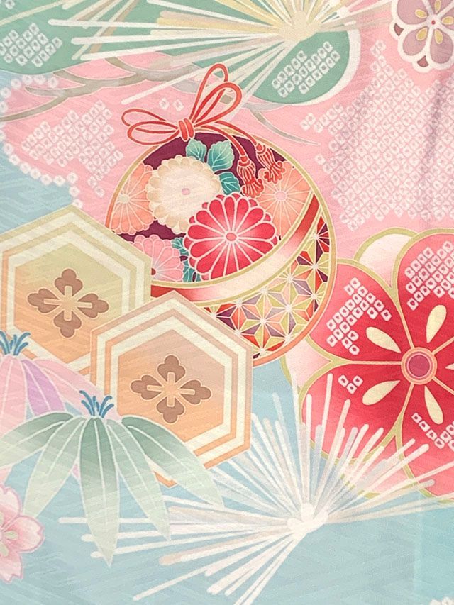 七五三 着物 7歳 女の子 式部浪漫ブランド 絵羽柄の着物 四つ身 子供振袖 合繊 水色 鞠梅 SR 7 pea 2502 tan