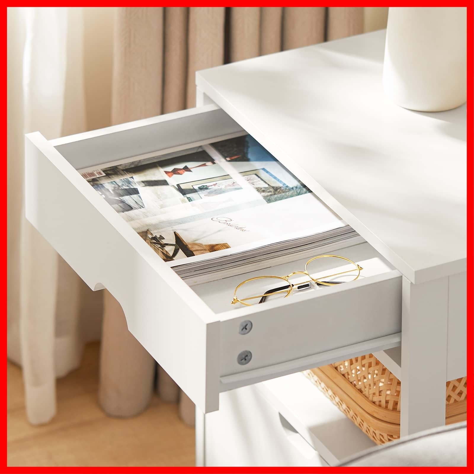 ??【お手入れ簡単&多用途】ラッカー塗装で、汚れにくく、水に濡れてもさっと拭き取ることができ、お手入れ簡単になります。ベッドサイドだけではなく、リビングに、ソファやチェアのサイドに置いて、書類、CD、資料の収納場、サイドテーブルとしても活用できます。