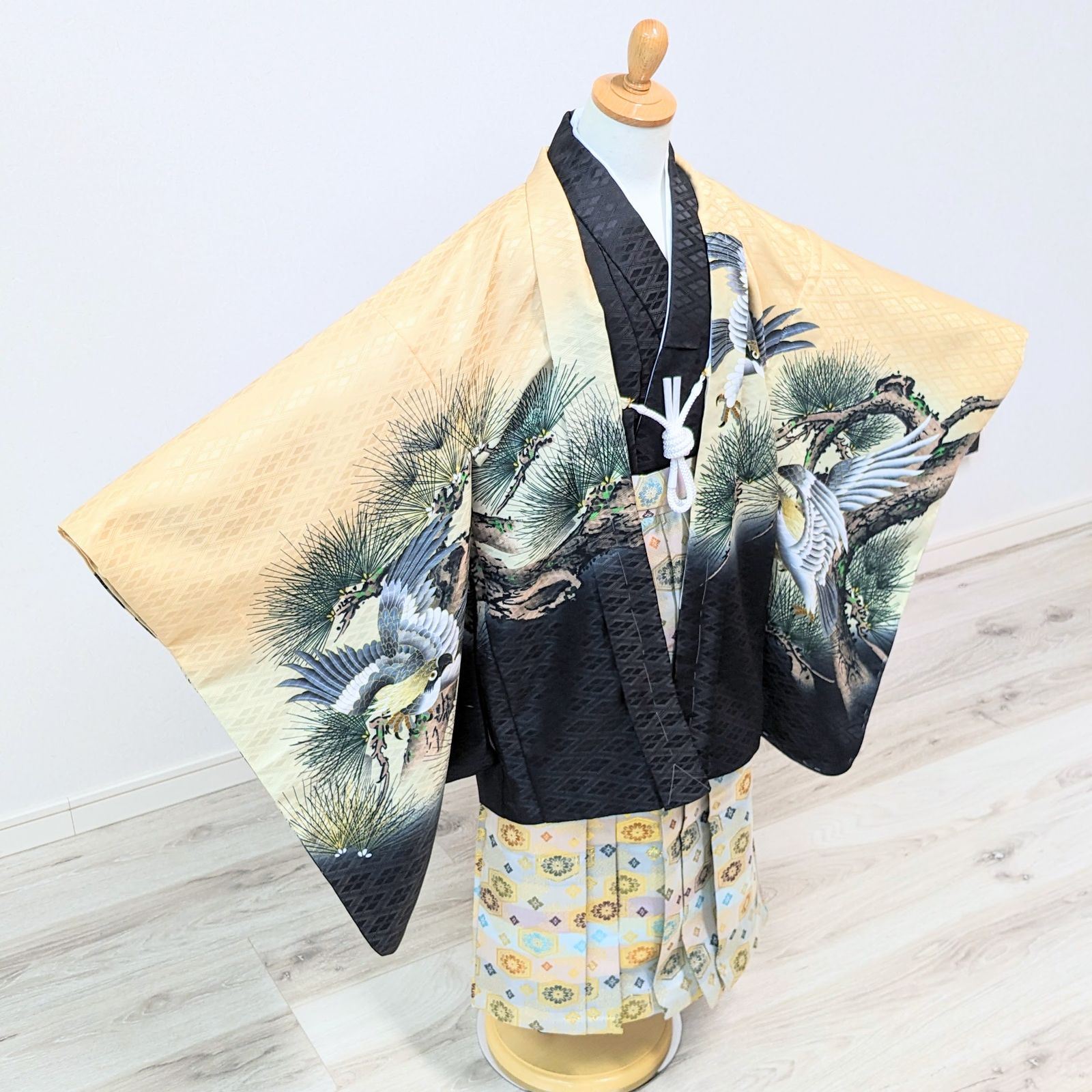 七五三 5歳 3歳 男の子 男児 着物 羽織 袴 セット クリーム 鷹 B 11