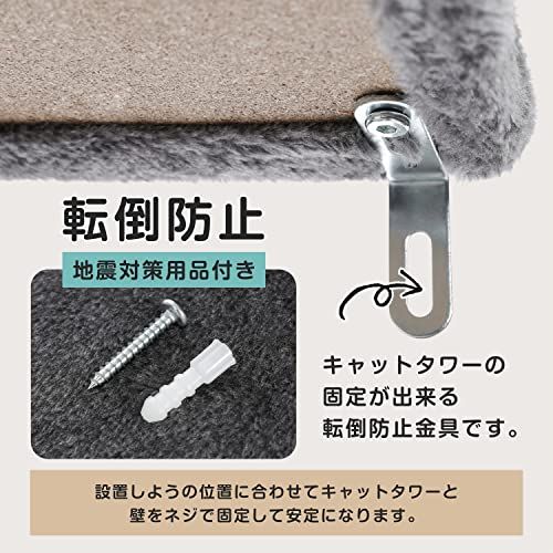ぺテぺラ キャットタワー 突っ張り スリム 突っ張り棒 取り付け簡単 猫タワー ツッパリ 省スペース 麻紐 爪とぎ ボンボンおもちゃ 運動不足解消 多頭飼い グレー 高さ調整幅238 275 cm 44 a 33223