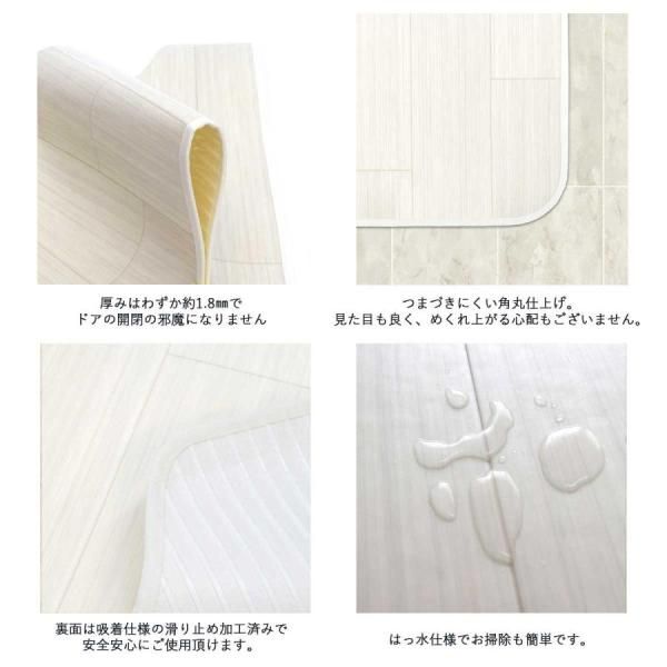トイレマット 耳長 ロング ふける 拭ける 長い 長め おしゃれ 北欧 木目柄 白 ホワイト モザイクタイル 石目 フロアシート 抗菌 防カビ 防炎 撥水 滑り止め 80cm