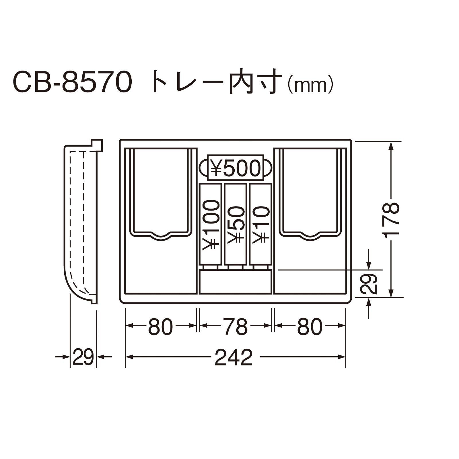 【硬貨収納枚数】500円32枚、100円46枚、50円44枚、10円50枚