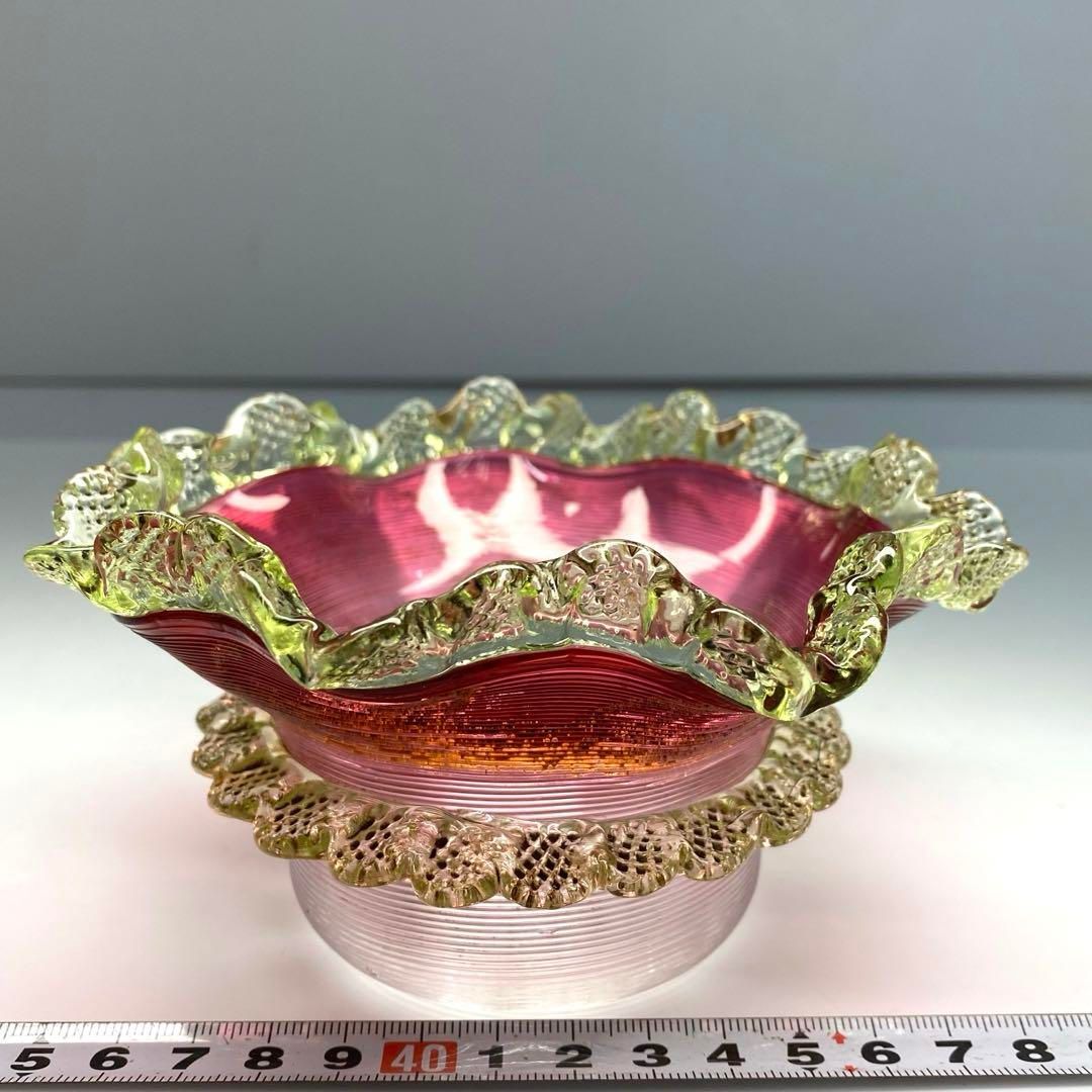 時代 ウラングラス フリル鉢 幅13 7㎝ 東な6 0503
