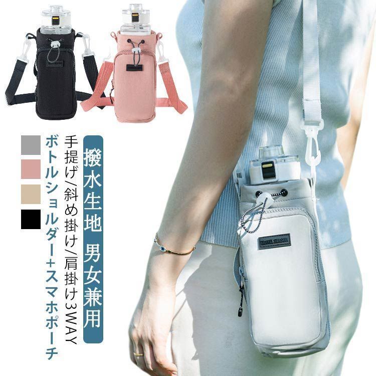 ペットボトルホルダー 水筒カバー スマホポーチ ナイロン 撥水 3 way 斜め掛け スマホ 収納ポーチ 水筒ホルダー 水筒ケース 500 ml 1000 ストラップ タンブラー 長さ調節 ショル kkk 07022