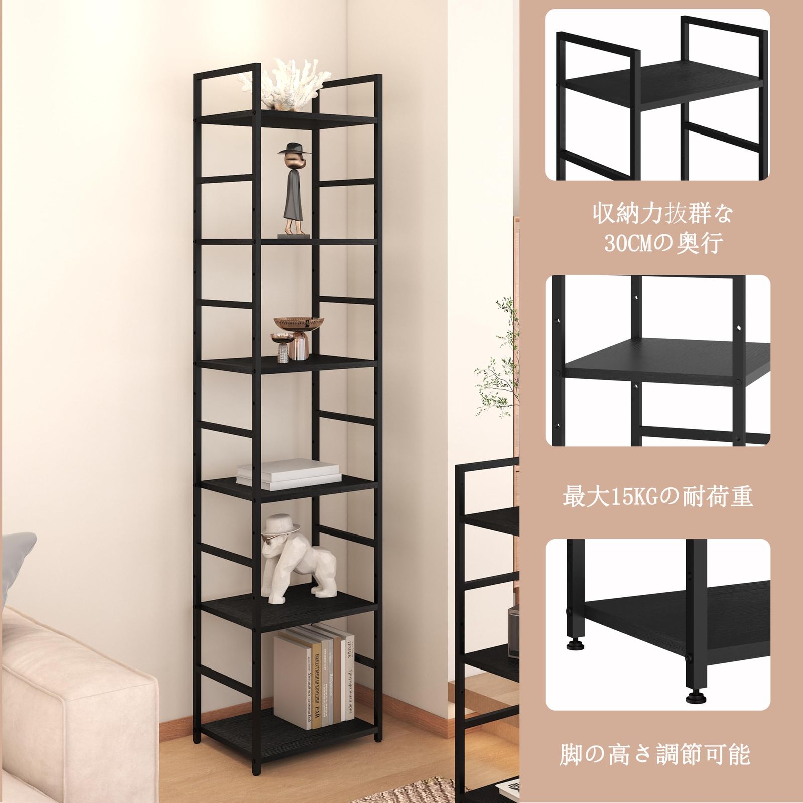 【スリム収納&おしゃれ】シンプル&スリムな構造、ファッション、実用的で、本棚、収納ラック、植物のスタンドに十分なスペースを提供し、オフィスの棚、居間、キッチン、リビング、書斎、寝室などに適しています。
