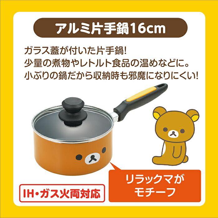 リラックマの仲間たちがデザインされたカワイイお鍋とフライパンの5点セット