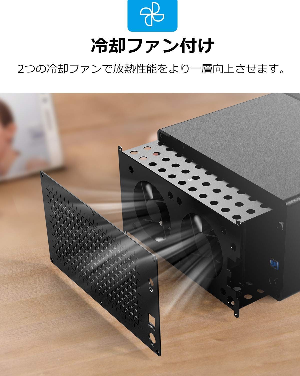 【優れたデザイン】高級感が溢れる磁気式蓋で、工具不要でも気楽にHDDを装着させます。後ろにはハニカム式放熱構造でハードディスクが低温で静かに稼働することができます。また、製品は92mmファンを装備し、温度をより一層控えられます。