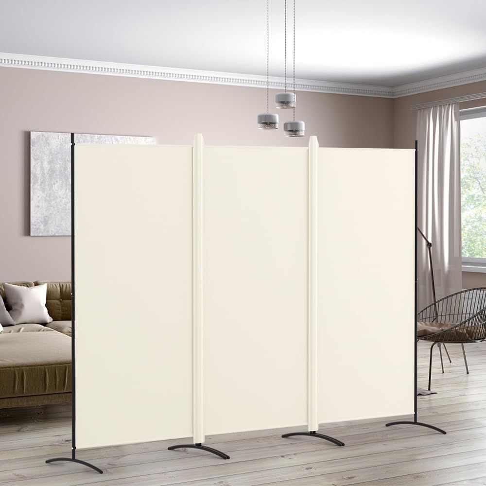 KELIXU パーテーション 間仕切り 3連 自立式 衝立 カバーストリップ付き 高さ1.8m×幅2.6m 布タイプ 折りたたみ 仕切りパネル 軽量 クロスパーテーション 目隠し 屏風 おしゃれ 組み立て簡単 部屋 オフィス 会議室 (ベージュ)