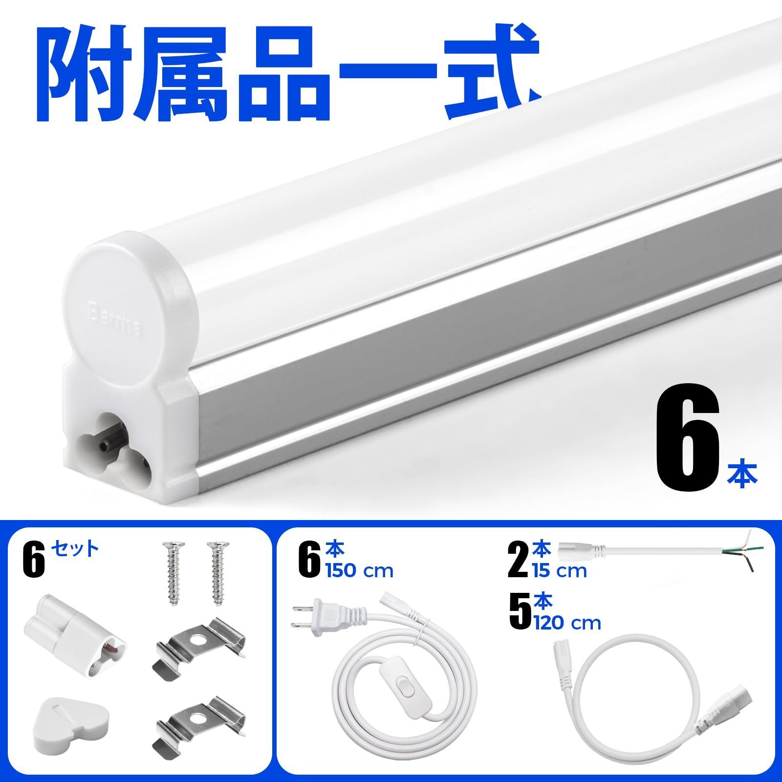 6本入り LED蛍光灯品質:3年間無制限、品質に問題がある場合は、簡単かつ迅速に交換します。付属品:1.5m電源スイッチ線×6 、連結コネクタ×6、1.2m連結ケーブル線(工事不要)×5、連結ケーブル線(接続工事要)×2、固定金具 ×6、ネジ ×6、保護キャップ×6