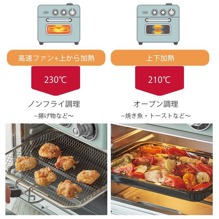 食材自体が持つ脂を利用して高温の熱風で揚げ物調理ができる「Toffy ノンフライオーブントースター」。
