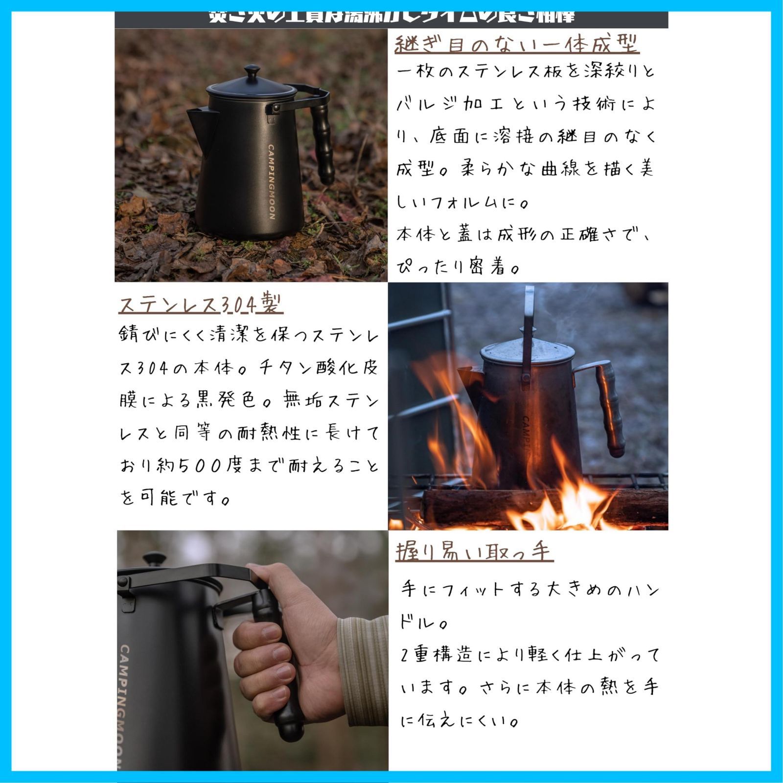 黒ギア 1 5 L ステンレス304 一体成形 キャンプケトル ファイアープレイスケトル BKSW 6 直火 黒 ケトル 焚き火 MOON キャンピングムーン CAMPING
