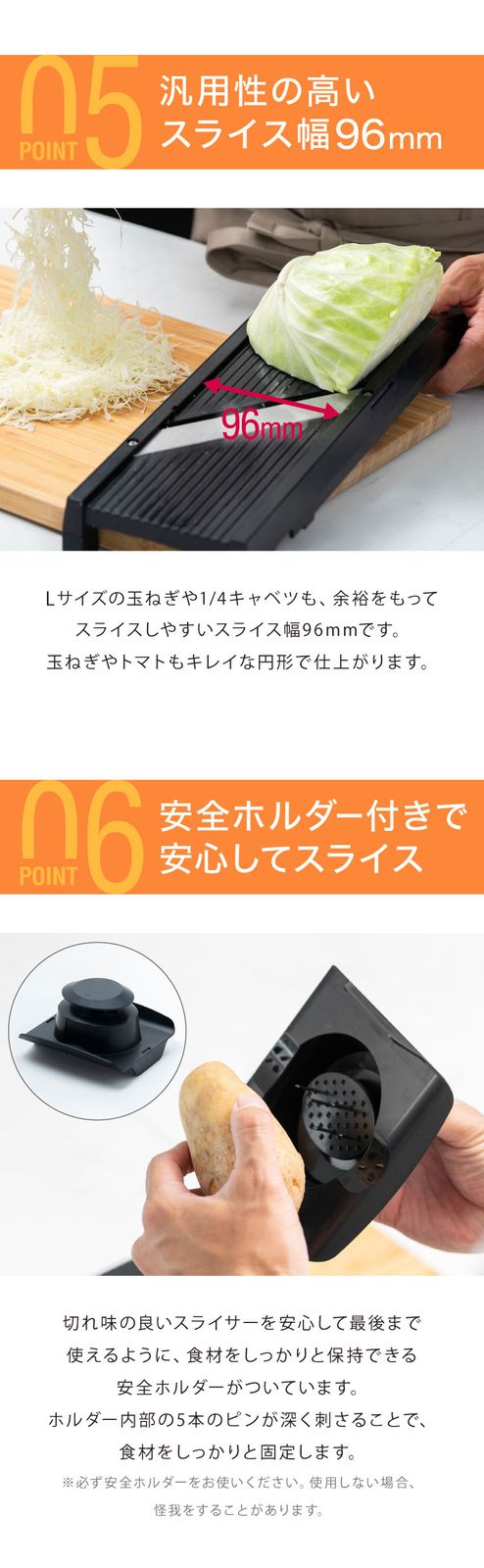 食材をスライスする際は、必ずホルダーをご利用ください。