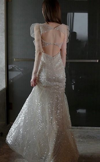 スリム ロングドレス バックオープン 長袖シースルー ビジュー