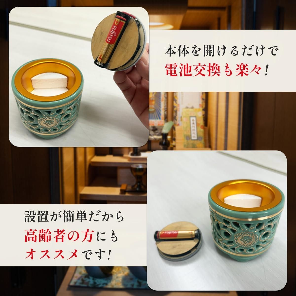 火を使わずな電子線香 仏具 LED電子線香 サンやすらぎ 寝かせ線香タイプ 透かし香炉 差金付 2.5寸 (東用)