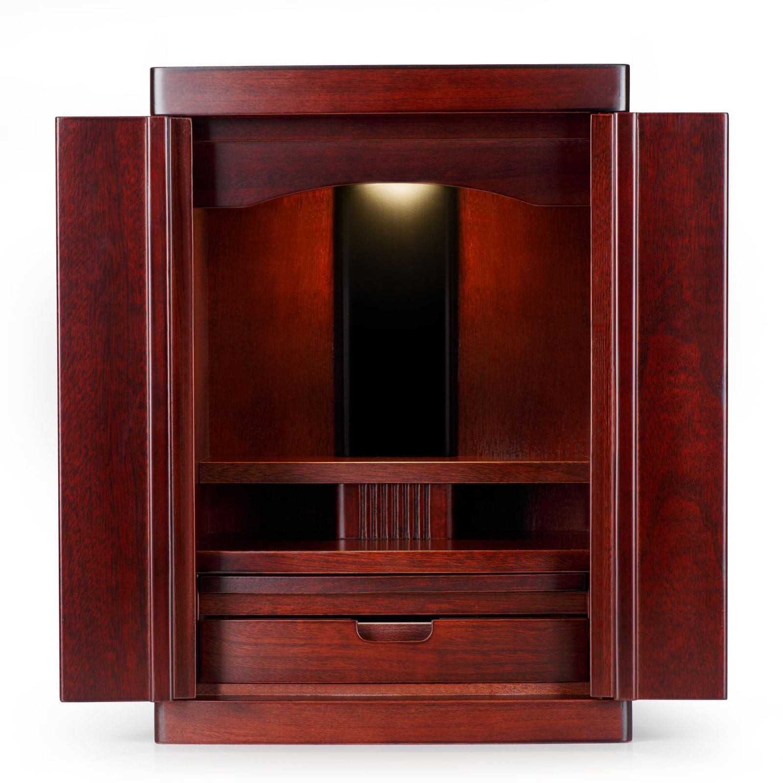 【收?しやすい】箱内には引き出しと前後に動かせる仏具用板があります。おすすめの位牌サイズは:幅10cm、奥8cm、高さ20cm 【仏壇だけを販売しております、仏具は含まれてありません】