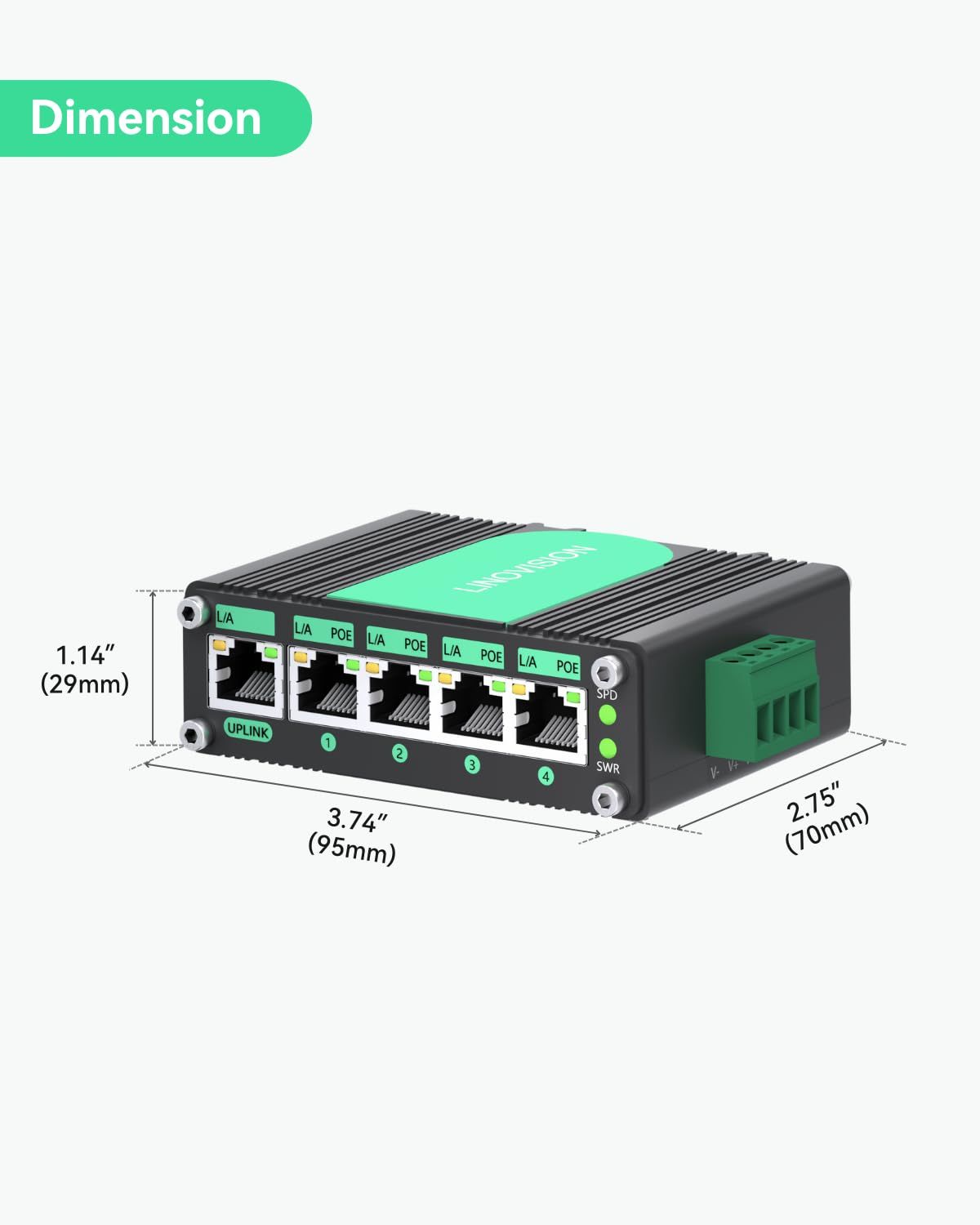 LINOVISION産業用5ポート ギガビット ソーラーPOEスイッチ | DC9V-54V入力、DC48V出力の内蔵電圧ブースター | 4 x IEEE802.3af/at 30W POEポート合計120W | IP40 | ソーラー/RVトラック/VoIPシステム用のコンパクトなPOE電源 | DINレール