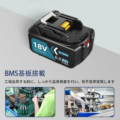 Boetpcr 互換 マキタ 18 v バッテリー BL 1860 B 6 0 Ah大容量 セット 1815 N 1820 1830 Bなどに対応 BMS基板搭載 最新セル採用 LEDラ ab 5 7 de 8
