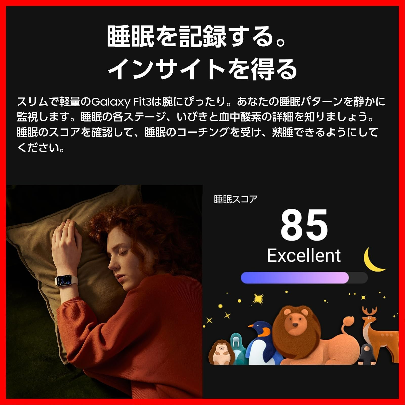 Samsung Galaxy Fit 3 グレー スマートウォッチ 発売 バッテリー持続最大13日 エクササイズ記録 防水 防塵 5 ATM IP 68 軽量 ディスプレイ1 6インチ 睡眠管理 SM