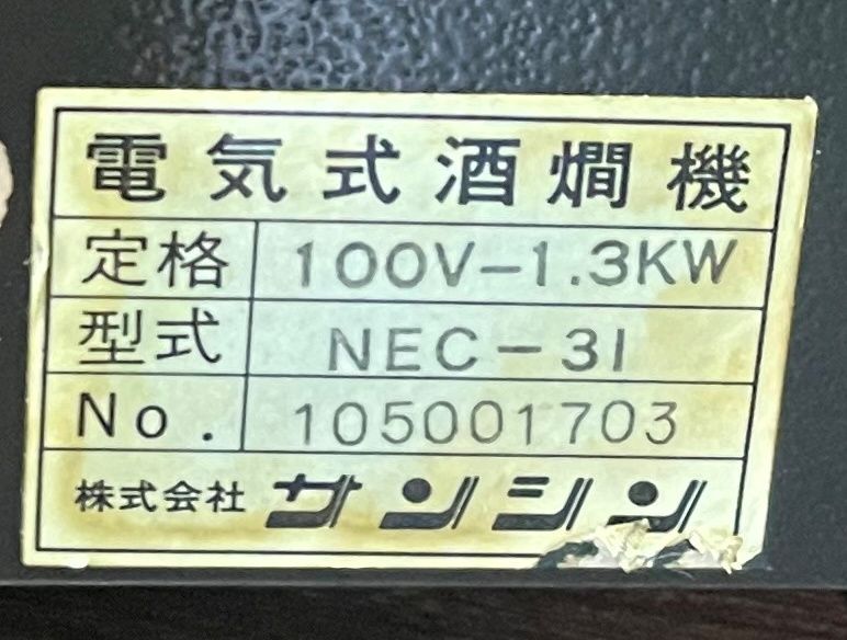 サンシン 電気式酒燗機 お燗番 NEC 31 動作良好 キュービ テナー 18L業務用酒パック 3本取 C 1549