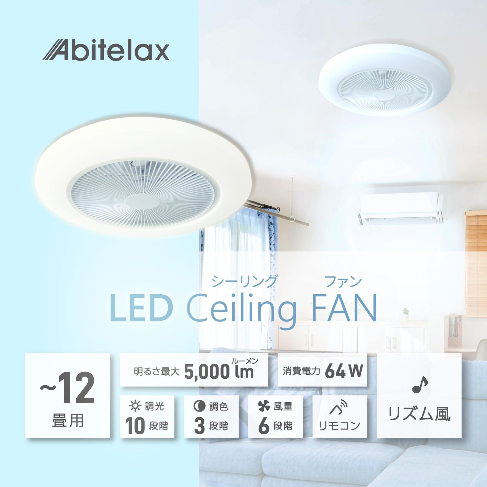 アビテラックス 【国内メーカー】 シーリングファンライト 12畳 調光調色 リズム風機能 オフタイマー付 シーリングファン ALC-FAN12 Abitelax