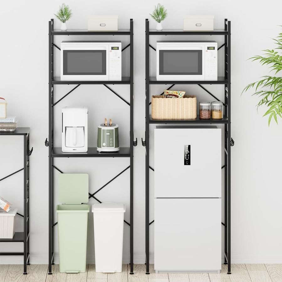 冷蔵庫上ラック ゴミ箱上ラック 洗濯機ラック W 60 D 40 H 180 cm 11段調整 ワイヤーネット収納 レンジ台 レンジラック 食器棚 大型電子レンジ対応 フック 付き