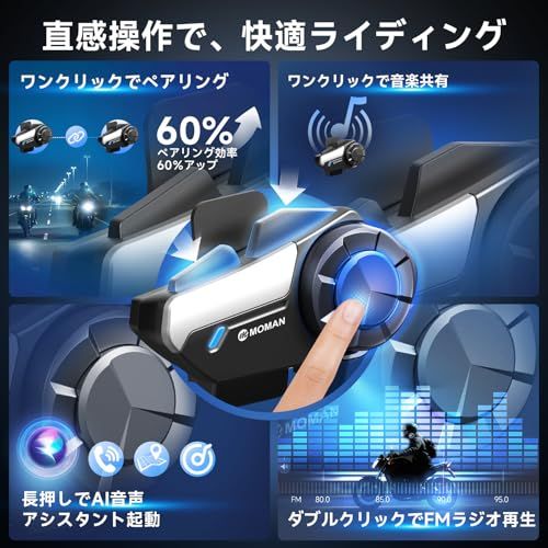 バイク用インカム Moman モーマン H 2 S ワイヤレス5 3 5 1 ヘルメット用インカム 最大1000 m通信距離 2人同時通話 HIFI 40 mmスピーカー 3重ノイズキャンセリング CVC DSP ENC 自動音量調整 音 4 ce 3999 c
