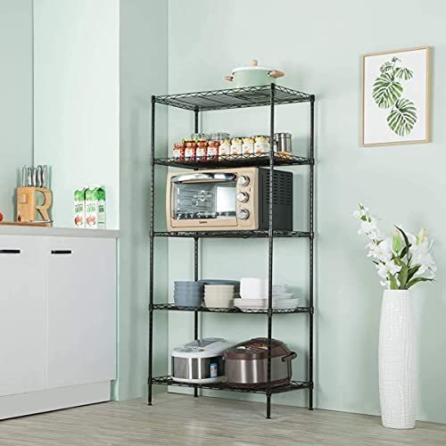 迅速に発送 スチールラック メタルラック キッチンラック 本体 高さ調節 5段 防サビ加工 棚 収納 頑丈 キャスター付き ブラック 幅70 奥行40 高さ150 cm