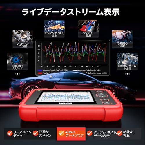 [ライブデータの複数表示 DTCコード定義説明] :Launch 自動車診断機CRP123XV3.0は、油温、圧力、トランスミッション温度、エンジン回転数、冷却水温度などのリアルタイムデータを表示し、どの部分に異常があるのかを把握できます。データは単一のマルチグラフに表示でき、2つのグラフをマージして分析できます(4つのPIDを1つにマージ)。自動車所有者
