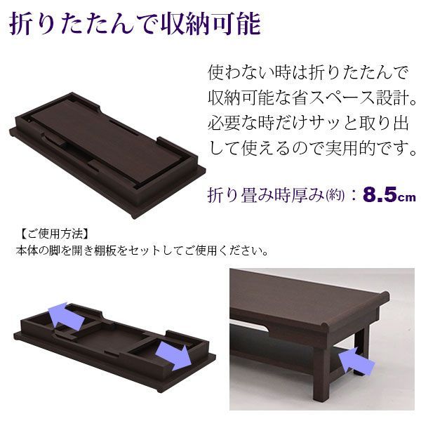 経机仏具机供物台幅75cm棚板付き(折りたたみ可能)の説明