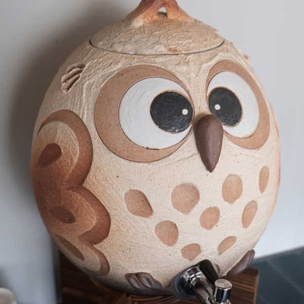 シンプル,信楽焼,陶製,made in japan,窯元,焼き物,土物,高級感,個性的,文化,伝統,民芸品,こだわり,和,シリーズ,激安,安い,リーズナブル,レトロモダン,おしゃれ,流行り,売れ筋,人気,美味しい,本格派,多孔質,タンク,お祝い,可愛い,かわいい,梟,ウォーターサーバー,4.5リットル