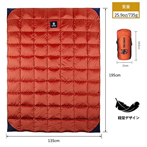 OneTigris ダウンブランケット 195 cm?135 cm マルチブランケット 防寒 キャンプ アウトドア ひざ掛け 掛け布団 車中泊 超軽量 テント用キルト 柔らかい 暖かい コンパクト 収納袋付き オレンジ po 9 b 27014 e