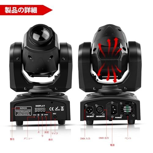 【操作モード】本ムービングヘッドは、DMX 512、リモコン操作、マスタースレーブ連動、サウンドアクティブ(音声連動)、自動運転、ストロボの各モードを搭載し、ユーザーのニーズに合わせて自由に選択できます。また、プロ向けの 9 チャンネル・11 チャンネル DMX 制御に対応し、内蔵されたスムーズな電子調光機能により、0100% の幅で明るさを精密に調整することが可能です。