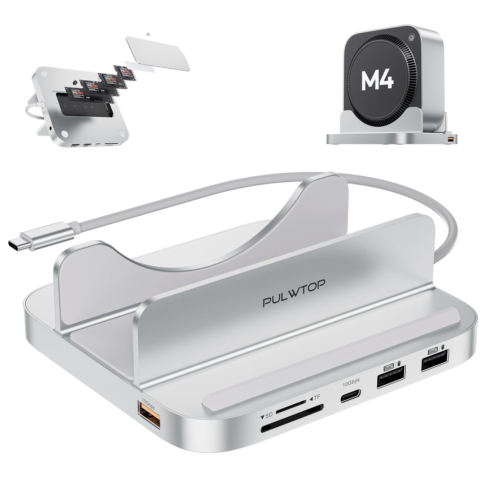 8 in 1 USB C ハブ Mac Mini M4/ M4 Pro 2024用 スタンド 縦置き 1 x USBC/USBA 3.2 Gen 2 10Gbps, 2 x USB-A 2.0, 1 x 3.5mm Audio & Mic, 1 x SD/TF カードリーダー, 容量拡張 M.2 PCIe SSDスロット付 (SSD含まれない)