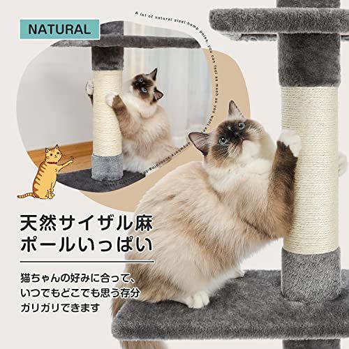 ぺテぺラ キャットタワー 突っ張り スリム 突っ張り棒 取り付け簡単 猫タワー ツッパリ 省スペース 麻紐 爪とぎ ボンボンおもちゃ 運動不足解消 多頭飼い グレー 高さ調整幅238 275 cm 44 a 33223