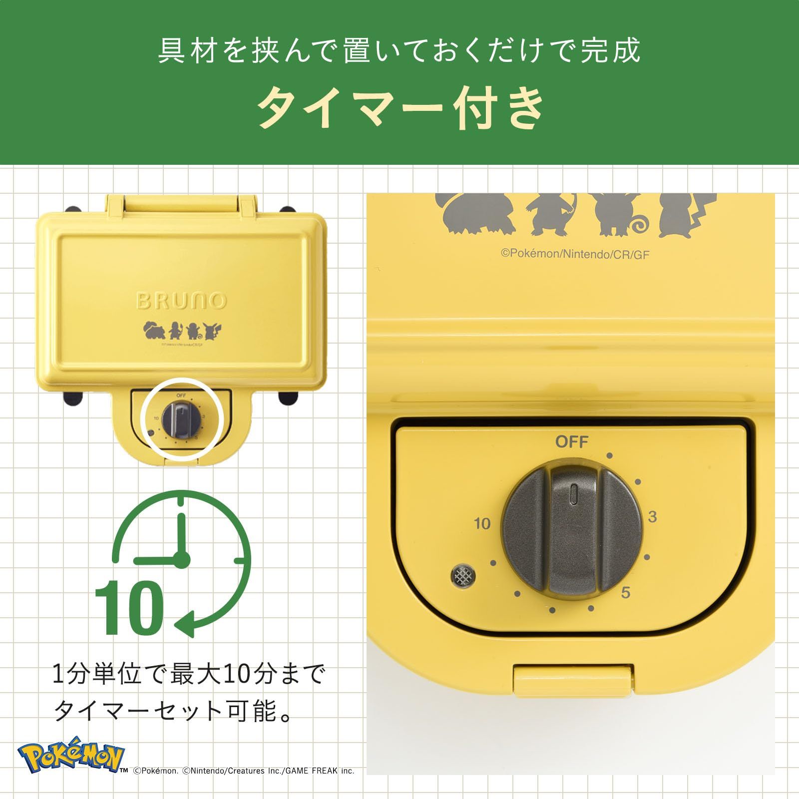 BRUNO ポケモン ホットサンドメーカー ダブル 電気 耳まで焼ける プレゼント ギフト 人形焼き かわいい ピカチュウ 黄色 イエロー BOE 132 YE サイズなし