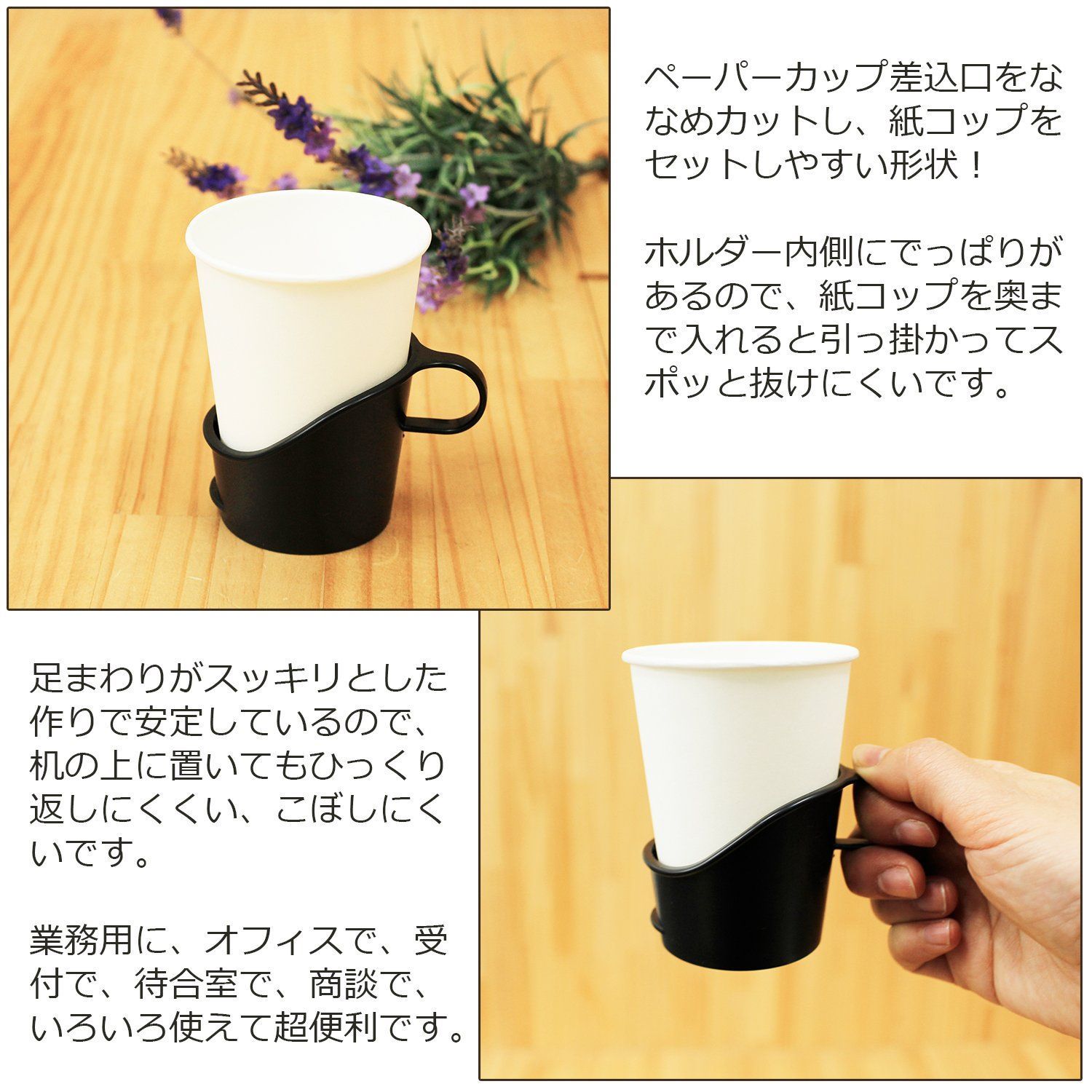 ●熱い飲みものを紙コップで飲むときに便利なペーパーカップホルダー