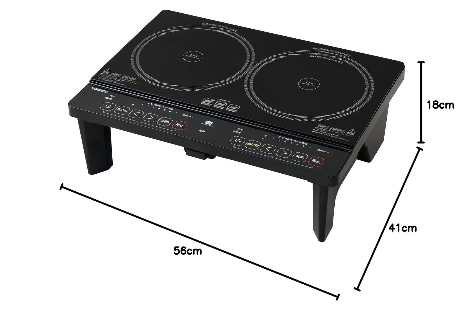 [山善] 2口 IHコンロ IHクッキングヒーター 1400W 一人暮らし 二人暮らし 脚付き IH調理器 工事不要 (幅56cmタイプ) タイマー機能 揚げ物対応 煮込みモード搭載 静音設計 ブラック YES-WL1456(B)