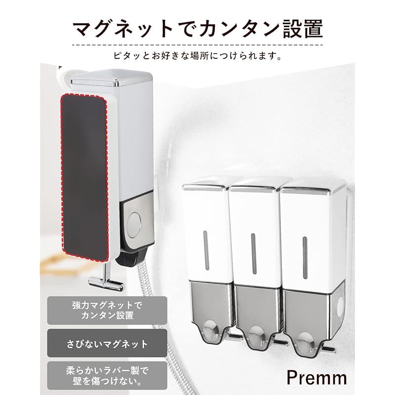 大容量550 ml 大吐出量2 3 PREMM シャンプーディスペンサー マグネット シャンプーボトル 壁掛け トリプル 550 x シルバー 1