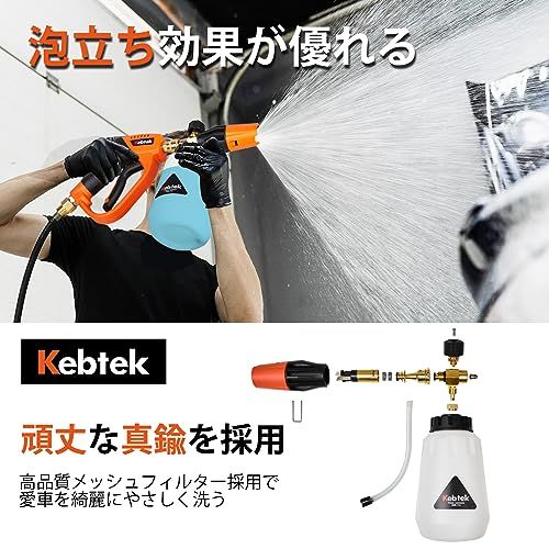 泡洗車と水洗車セット ケルヒャー対応 Kebtek 高圧洗浄ショートガン 6 in 1洗車 あんぜんロック機能付き フォームガン 泡 洗車 泡濃さ調整 M 22 14 mm真ちゅう製 クイックコネクタ ワンタッチ式 KarcherKシリーズ対応 圧力