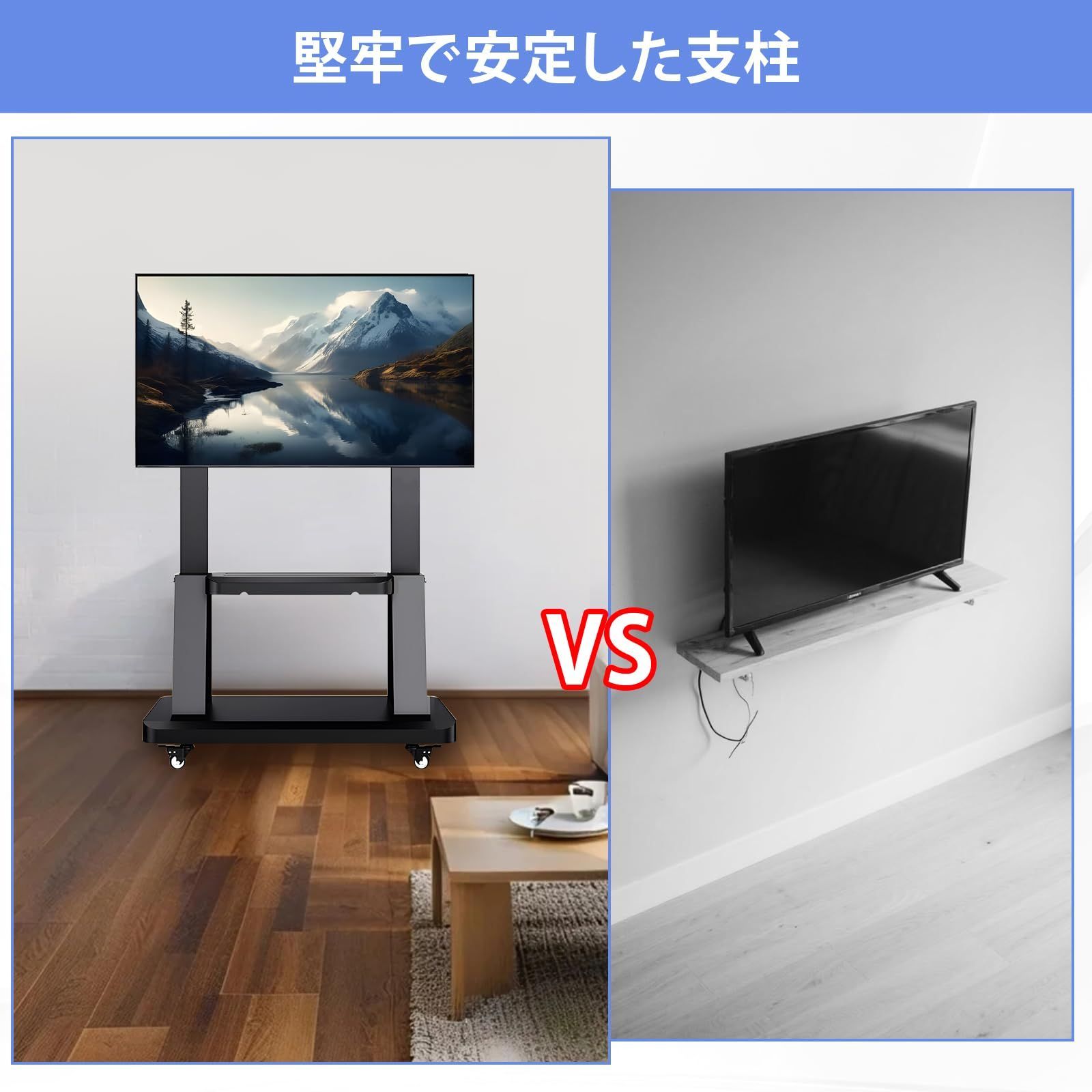 【VESA規格対応】32~75インチまでの大型テレビ/モニター/ディスプレイ/電子黒板を設置できる壁寄せスタンドです。対応するVESA規格(テレビ背面のネジ穴の間隔):横100~600mm 、縦100~400mm