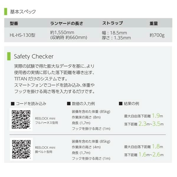 7営業日以内発送 在庫品 サンコー 安全帯 タイタン HL HS 130 REELOCKmini 小型軽量 ロック機構付き 巻取式 シングルランヤードX 2 新規格 タイプ1 適合 kg 墜落制止用器具 ミニ リール 販売不可