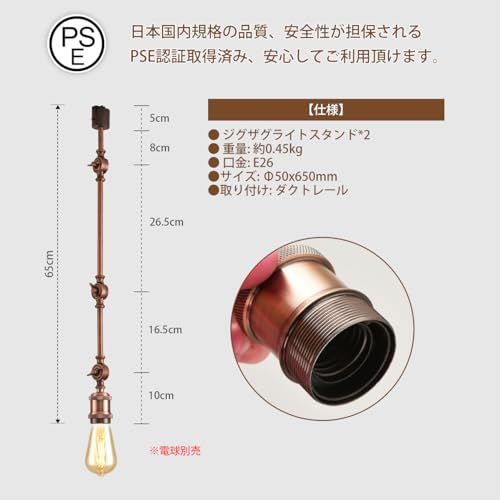 【商品情報】使用電球:E26 ※電球は付属しておりません。素材:鉄 可動範囲:各ジョイントは150調節可能、約330回転可能。取り付け:ダクトレール式
