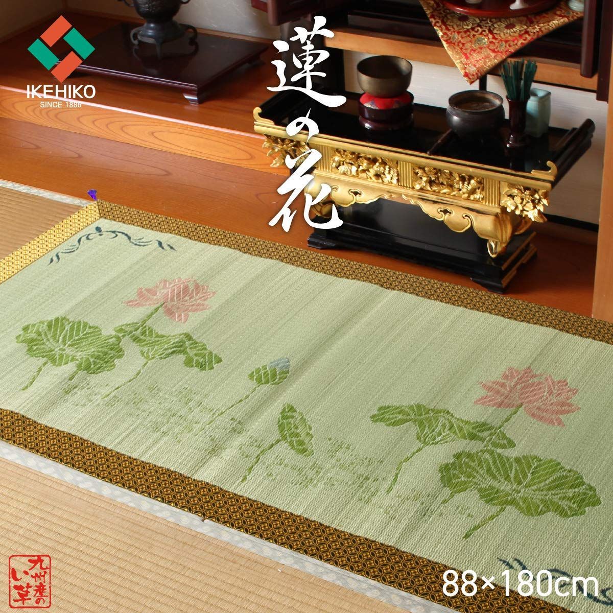イケヒコ い草 御前 仏前 ござ 国産 袋織 蓮の花 約88×180cm #3109769
