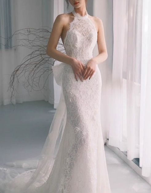 総レース ウェディングドレス ホルターネック マーメイド 上品