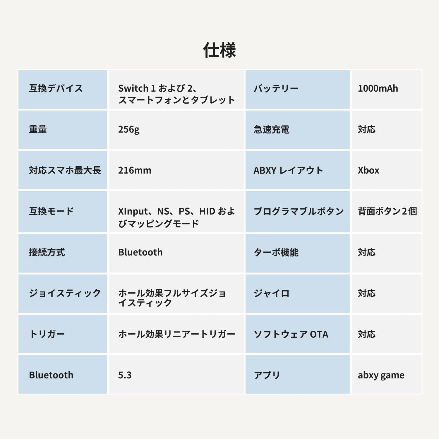 ゲームコントローラー|Bluetooth 接続(安定) Android、iPhone、iPad mini、Switch、Switch2、PC 対応 スマホ・最大 216mm iPad / タブレット対応(追加アダプター不要)|ホールジョイスティック・トリガー + カスタム背面ボタン・ワンタップスクリーンショット|人間工学長尺グリップ(滑り止め)で長時間疲れない|軽量折りたたみ式(携帯便利)|abxy 専用アプリでクラウドゲーム・エミュレーター等アクセス可(操作性・快適性・実用性両立)