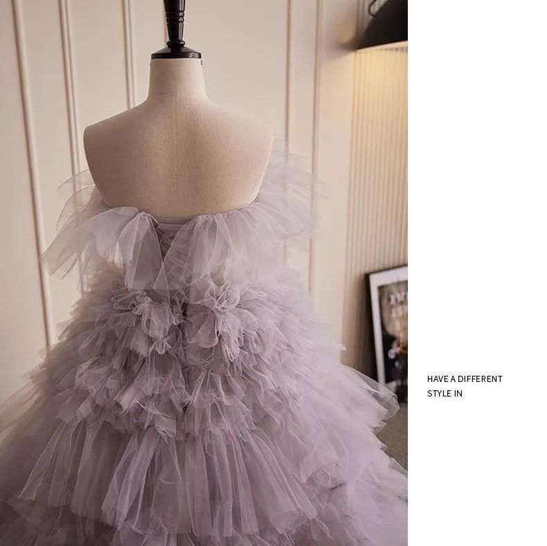 ウェディングドレス ティアード チュール オフショル 背中あき