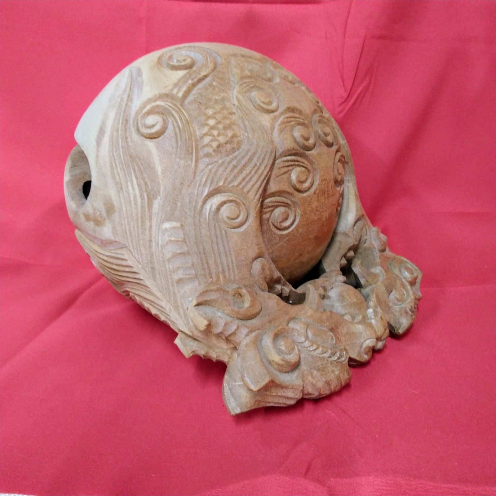 木製上刻 木魚 7寸 大き目仏壇|寺院用木魚Q 905