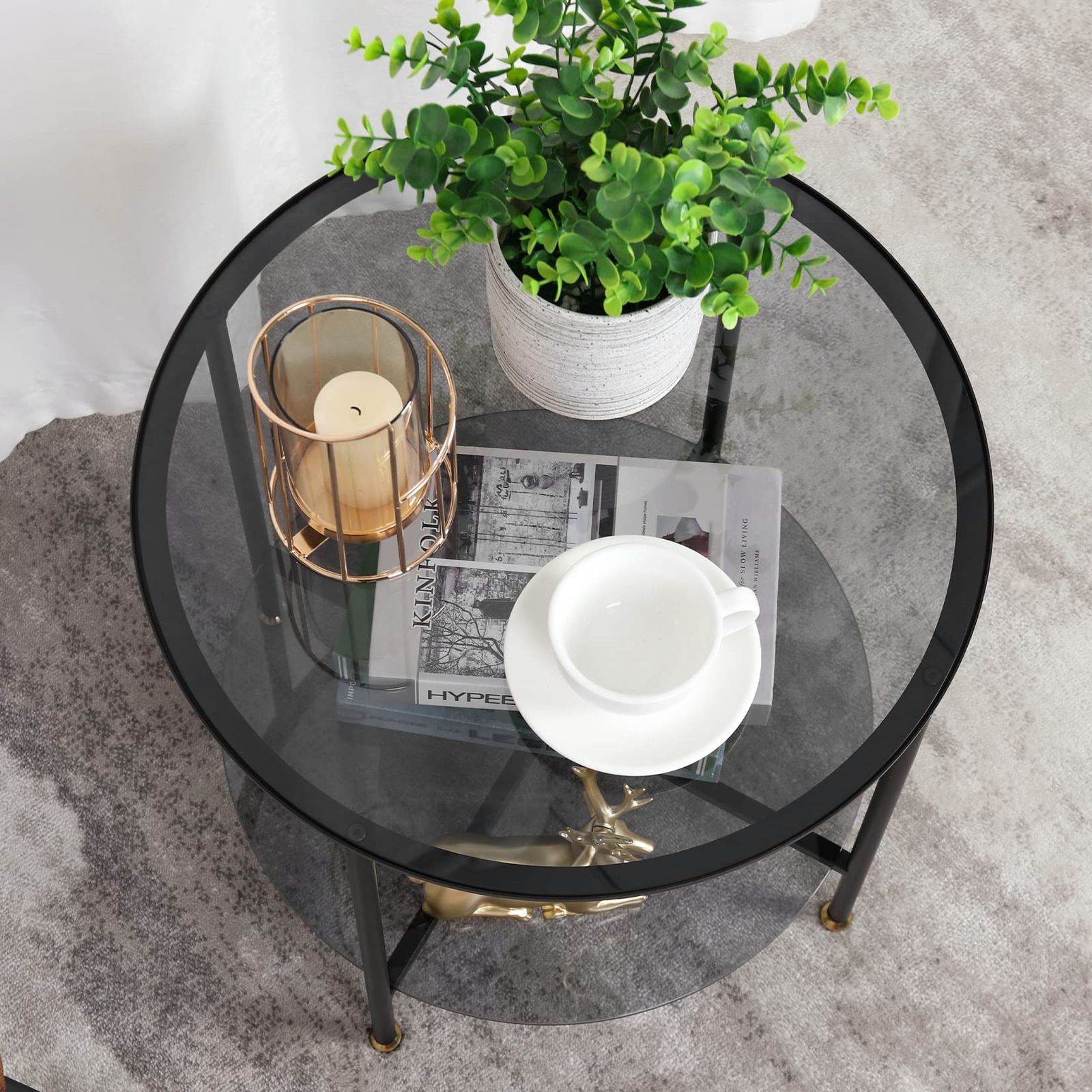 Artloge サイドテーブル 丸 ガラス ソファーテーブル ベッドサイドテーブル 2段 ベッド横 ソファ横 コーヒーテーブル ミニテーブル 丸型 おしゃれ 幅50×奥行50×高さ50㎝